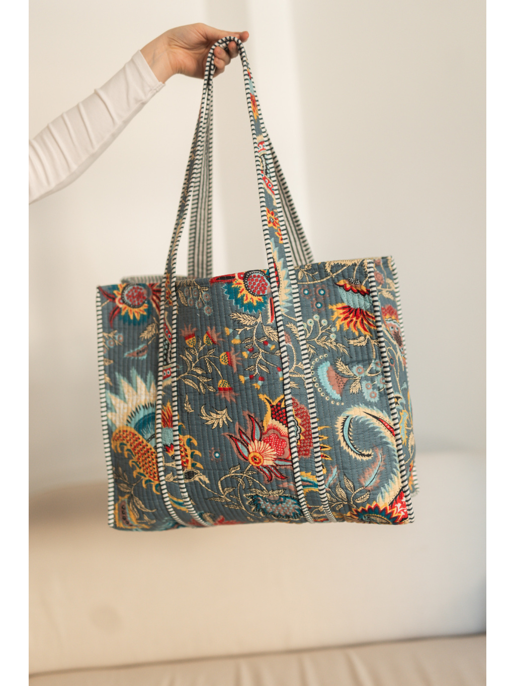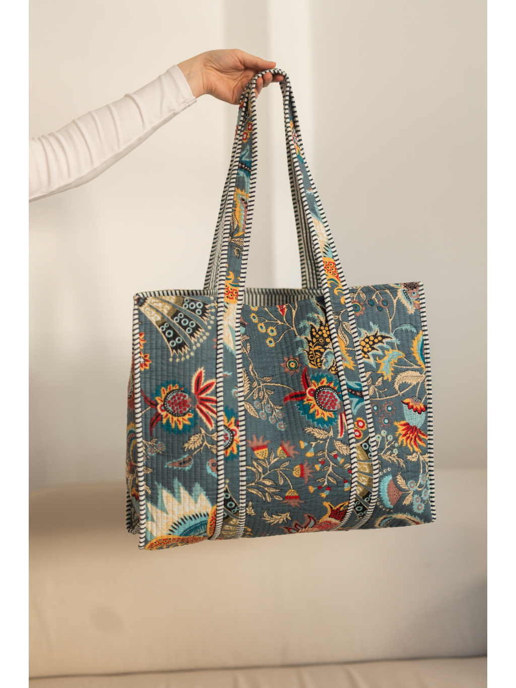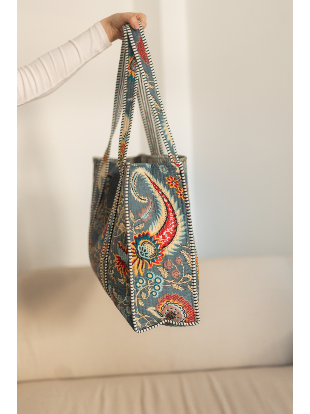 Ušitá z měkké bavlny s lehkým prošíváním, příjemná na dotek a poddajná, ale přesto si drží svůj tvar.