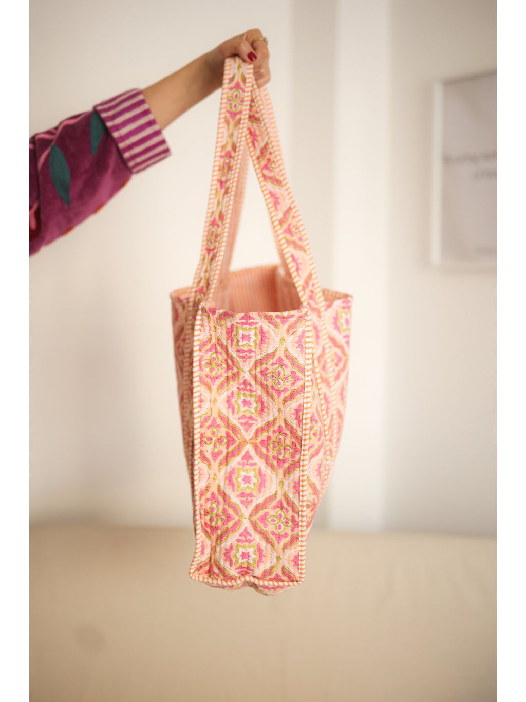 Ušitá v Indii z měkké bavlny s lehkým prošíváním, příjemná na dotek a poddajná, ale přesto si drží svůj tvar.
