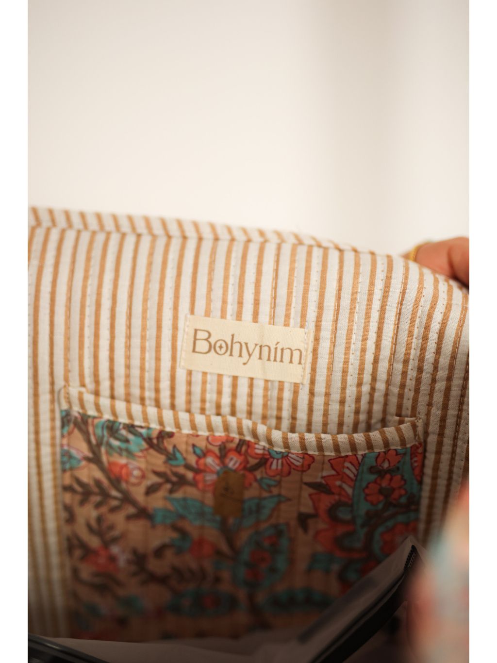 Uvnitř najdeš praktickou kapsu na drobnosti a logo Bohyním, které jemně připomíná, že krása může být i v jednoduchosti.