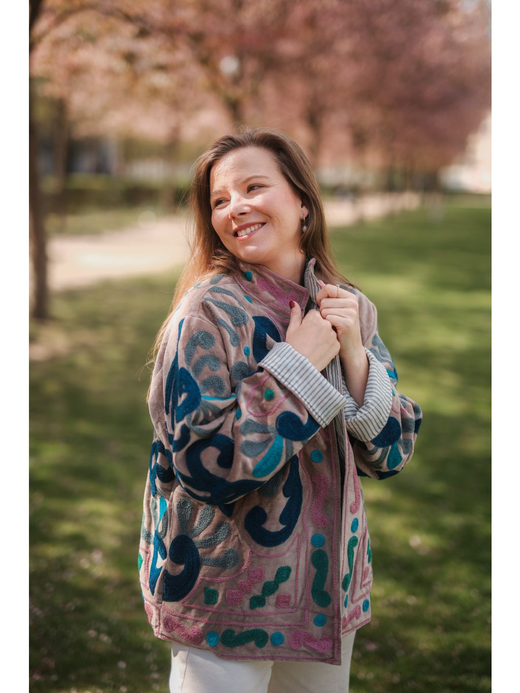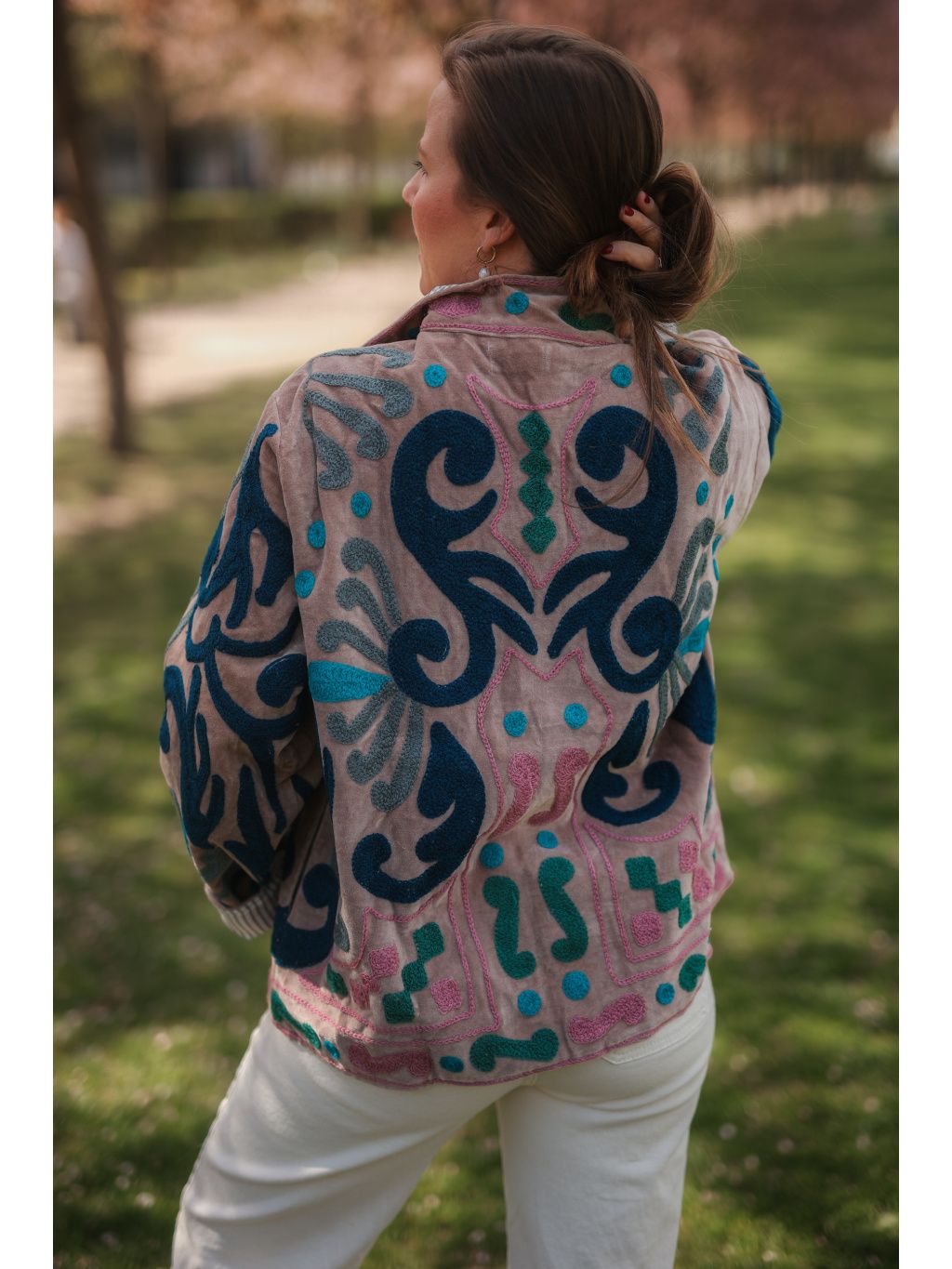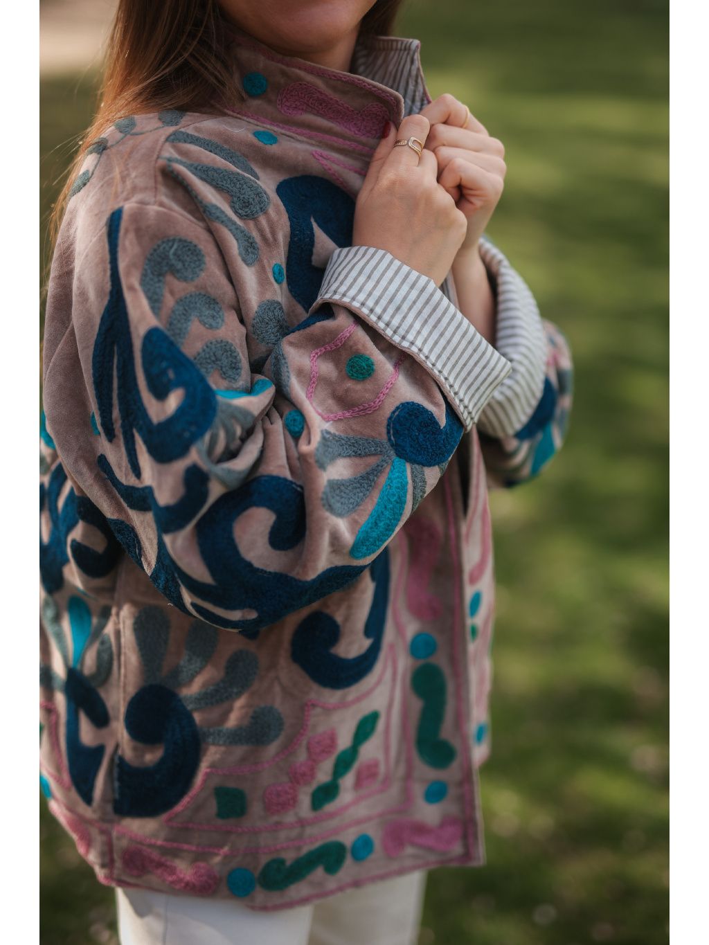 Semišová vyšívaná bunda z kolekce Bohyním - unikátní umělecké dílo ve vašem šatníku.