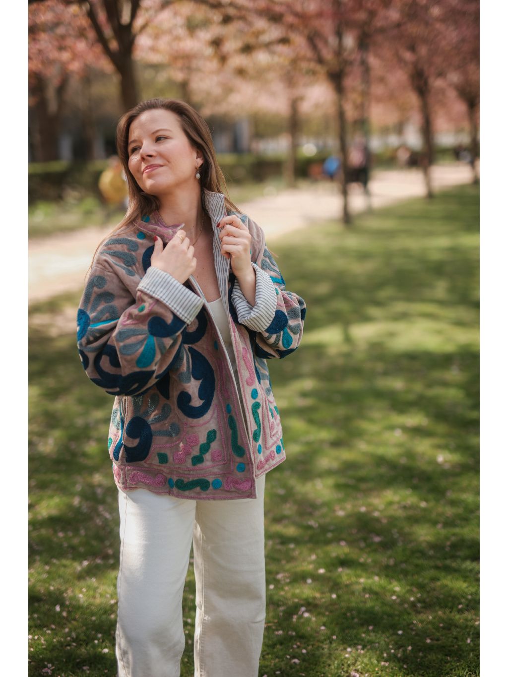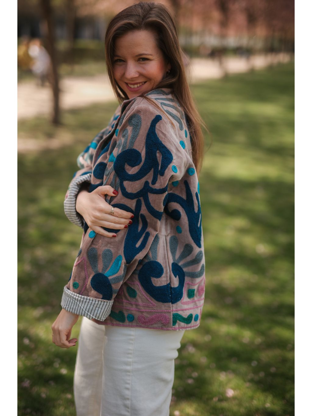 Originální semišová bundička s detailní výšivkou. Skvěle padnoucí over-size střih a extra jemný materiál pro vaše pohodlí od jara až do podzimu. Stylový unikát do vašeho šatníku.✨🍂