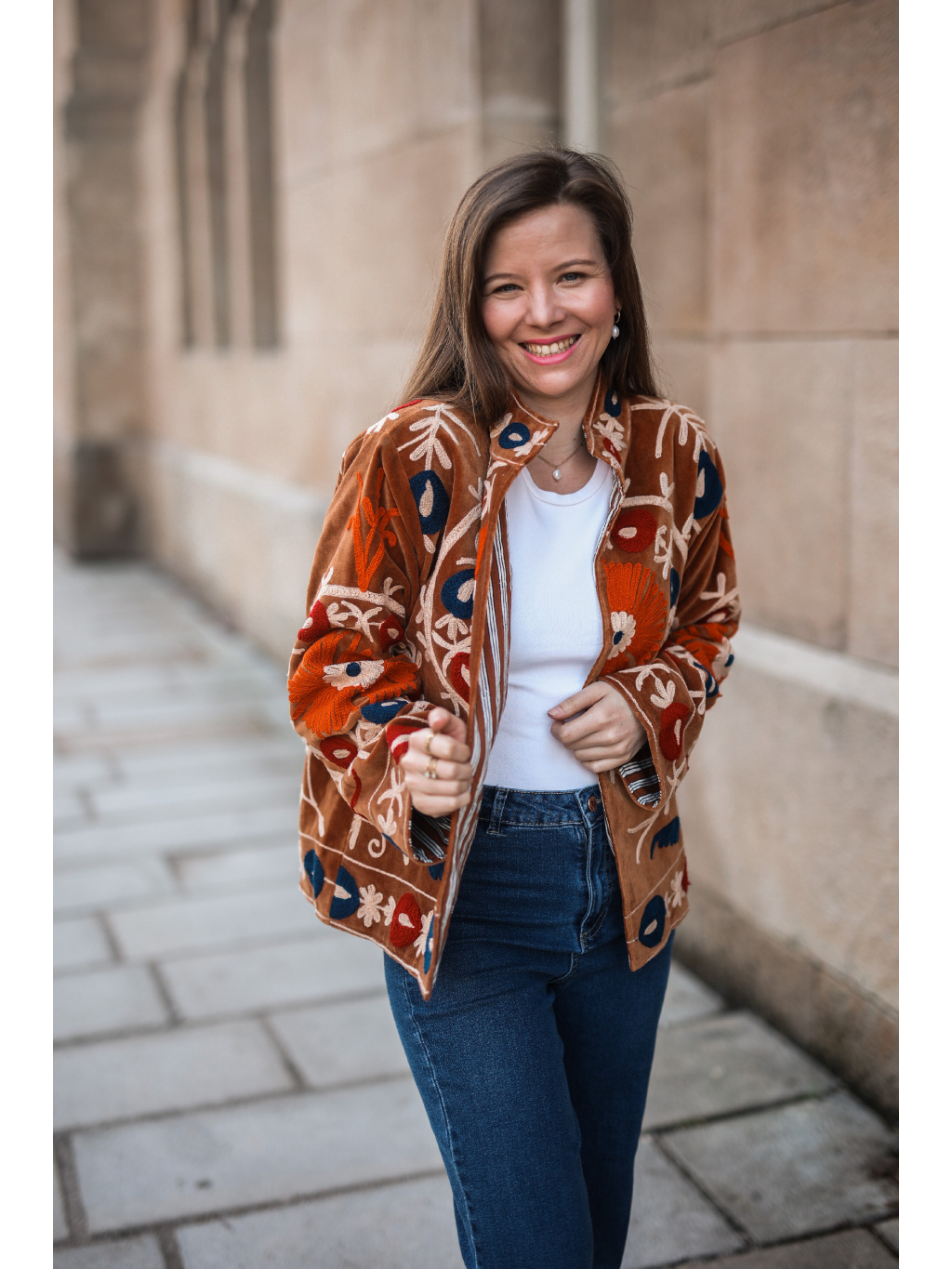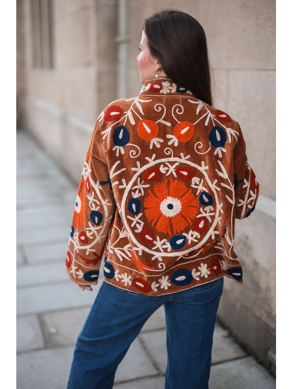 Nepřehlédnutelný kousek s duší, který v sobě nese kouzlo dálných krajů. Tato semišová bundička s bohatou celoplošnou výšivkou je ztělesněním ženskosti a originality. Díky skvěle padnoucímu střihu a hebkému materiálu se v ní budete cítit jako v bavlnce od jara až do podzimu. ✨🍂