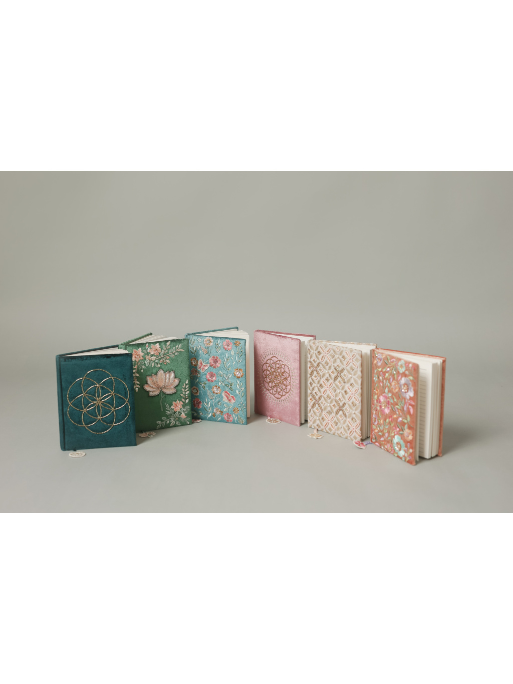Uvnitř najdeš linkované stránky, které čekají na tvé myšlenky, nápady nebo momenty klidu. Nechybí ani ladící vyšívaná záložka, která celý deník dotváří do posledního detailu.