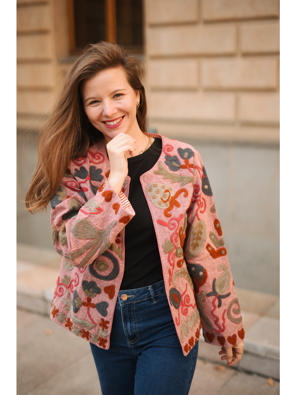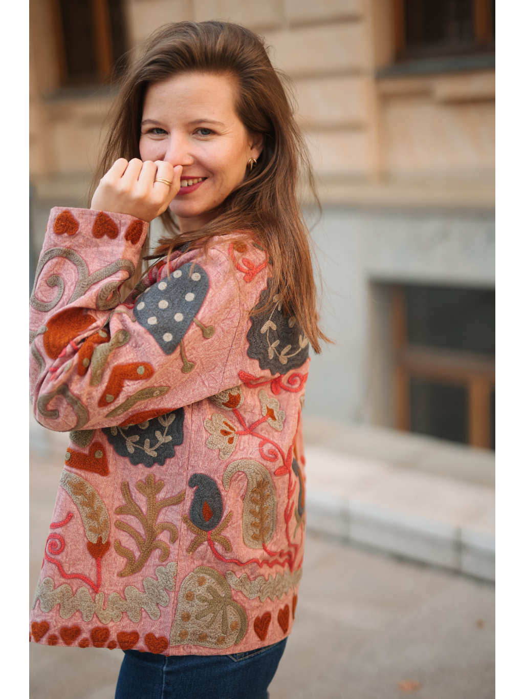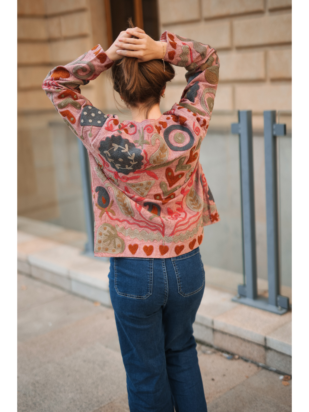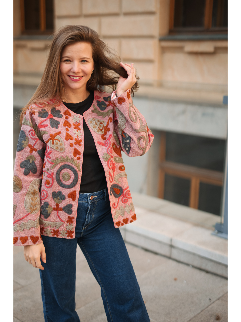 Díky svému univerzálnímu střihu se snadno kombinuje s šaty i kalhotami a stane se krásným vrchním kouskem pro každodenní nošení i speciální chvíle. Ruční výšivka nese autentické kouzlo – drobné nepravidelnosti nejsou chybou, ale důkazem její originality.