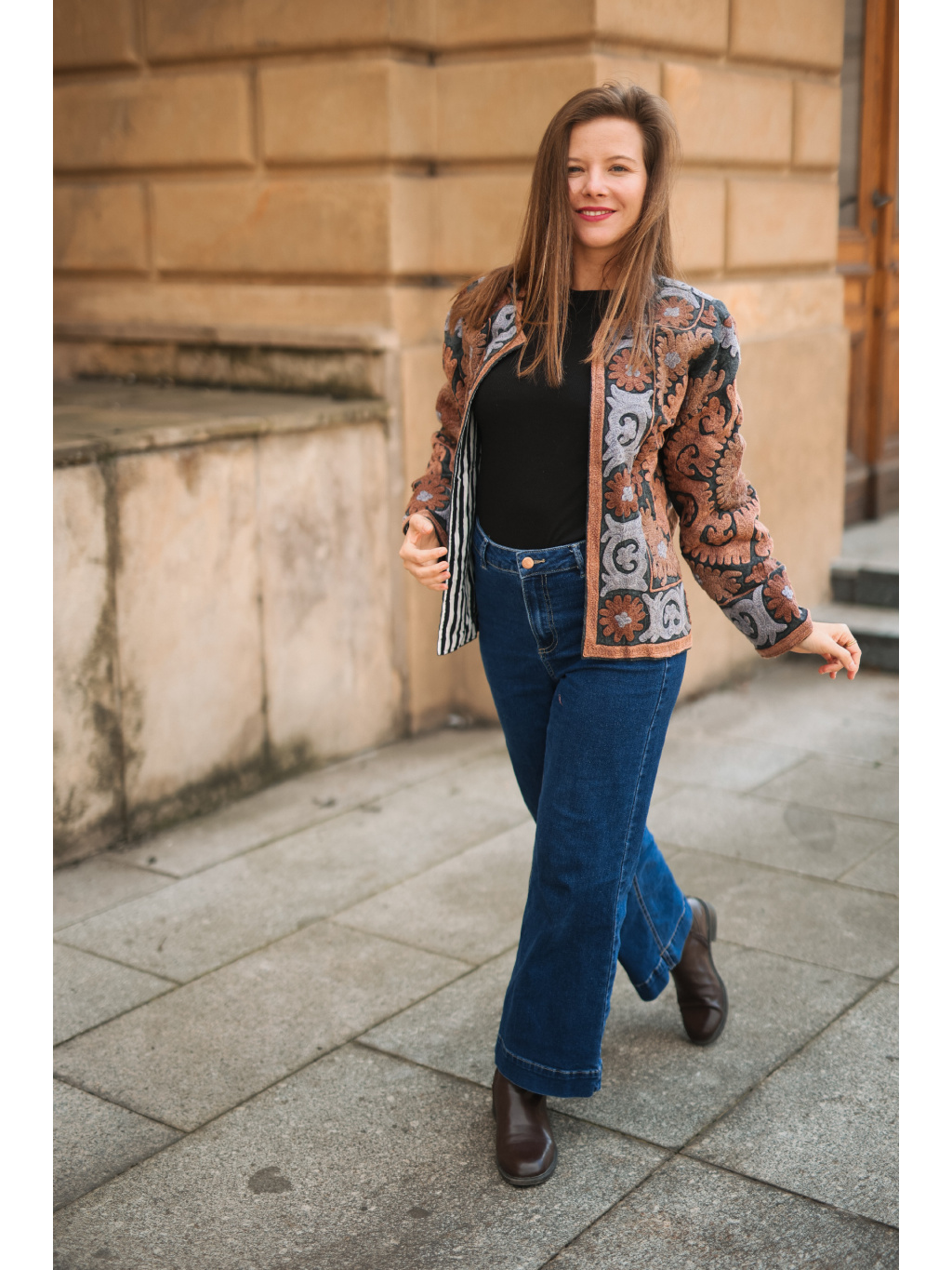 Tento jedinečný kousek z 100 % bavlny je nejen krásný, ale i hřejivý a pohodlný – ideální do přechodného období. Každá bundička je originál, který vypráví svůj vlastní příběh o ženské síle, klidu a vnitřní rovnováze.