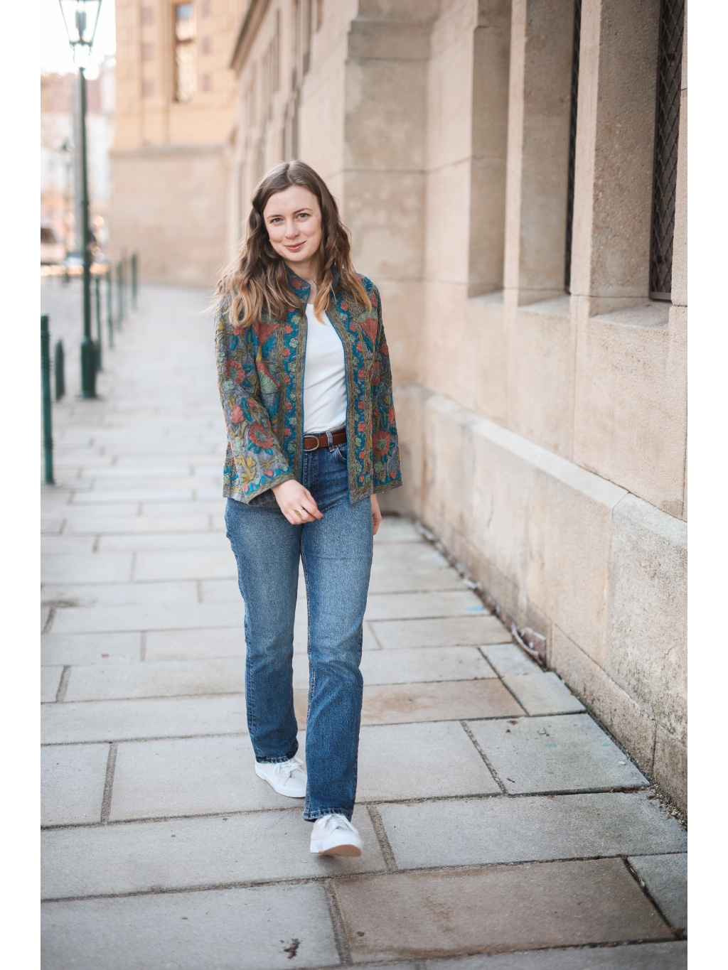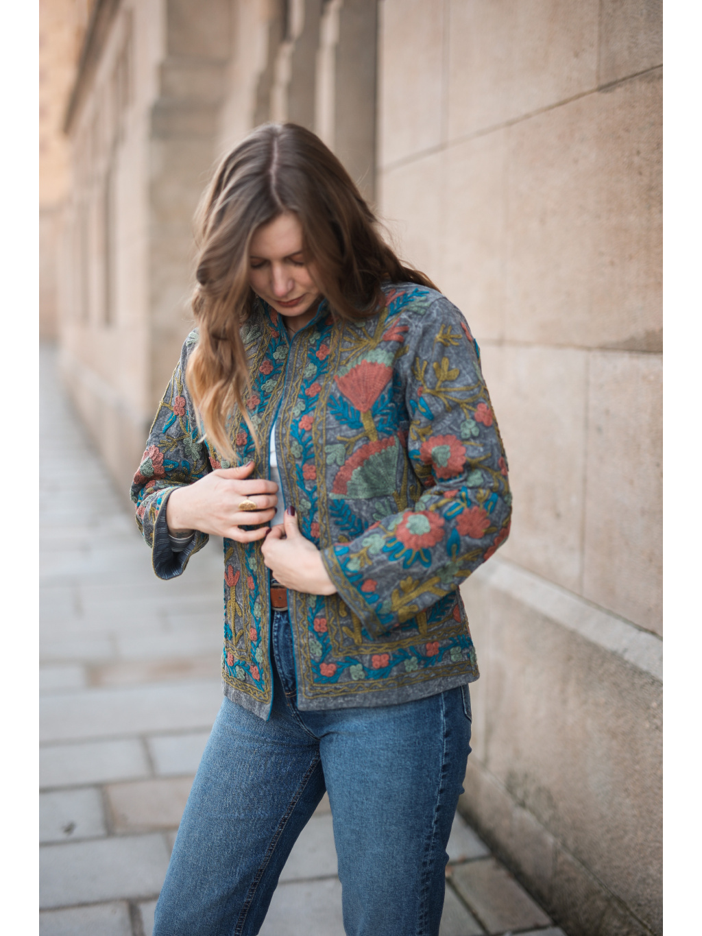 Hlavní předností našich bundiček je jejich perfektní střih (fit). I ve velikosti L skvěle sedí, drží tvar a okamžitě dodá postavě ten správný styl. Díky unikátnímu zpracování je každá jedna bunda naprostý originál – jsou to kousky, které se v naší kolekci neopakují. Je neuvěřitelně jednoduše kombinovatelná; skvěle doplní Vaše oblíbené šaty pro romantický look, ale stejně tak pozvedne i obyčejné džíny a tričko na novou úroveň.