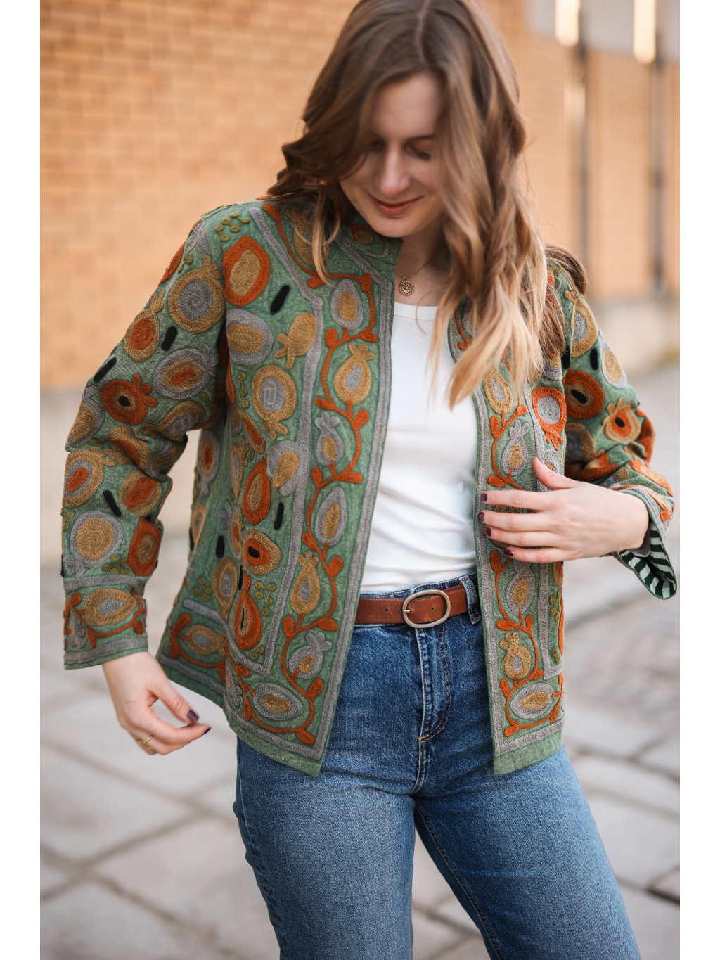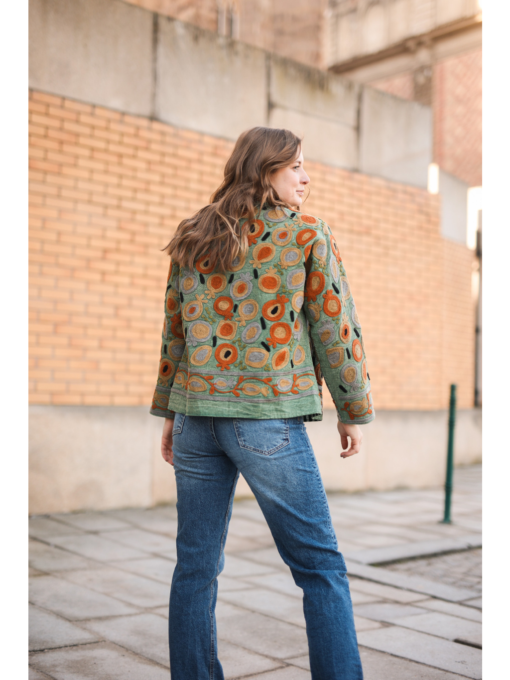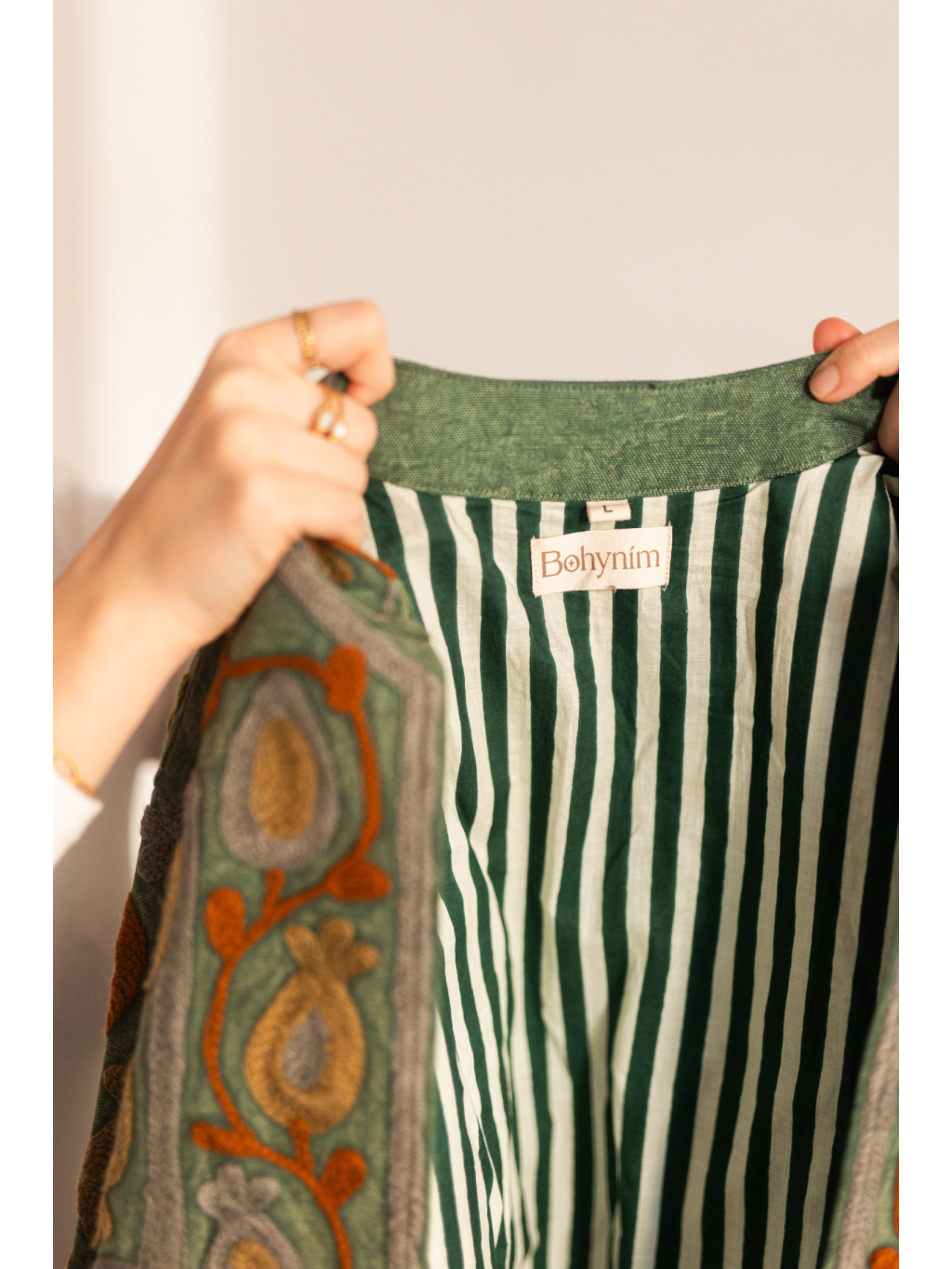 Kromě krásného vizuálu je její největší předností vyladěný střih (fit). I ve velikosti L bunda krásně drží tvar, lichotí postavě a působí velmi upraveně. Díky unikátnímu ručnímu zpracování je každý kus originálem. Je neuvěřitelně univerzální – skvěle doplní jednobarevné šaty, ale stejně tak pozvedne i ležérní outfit s kalhotami.