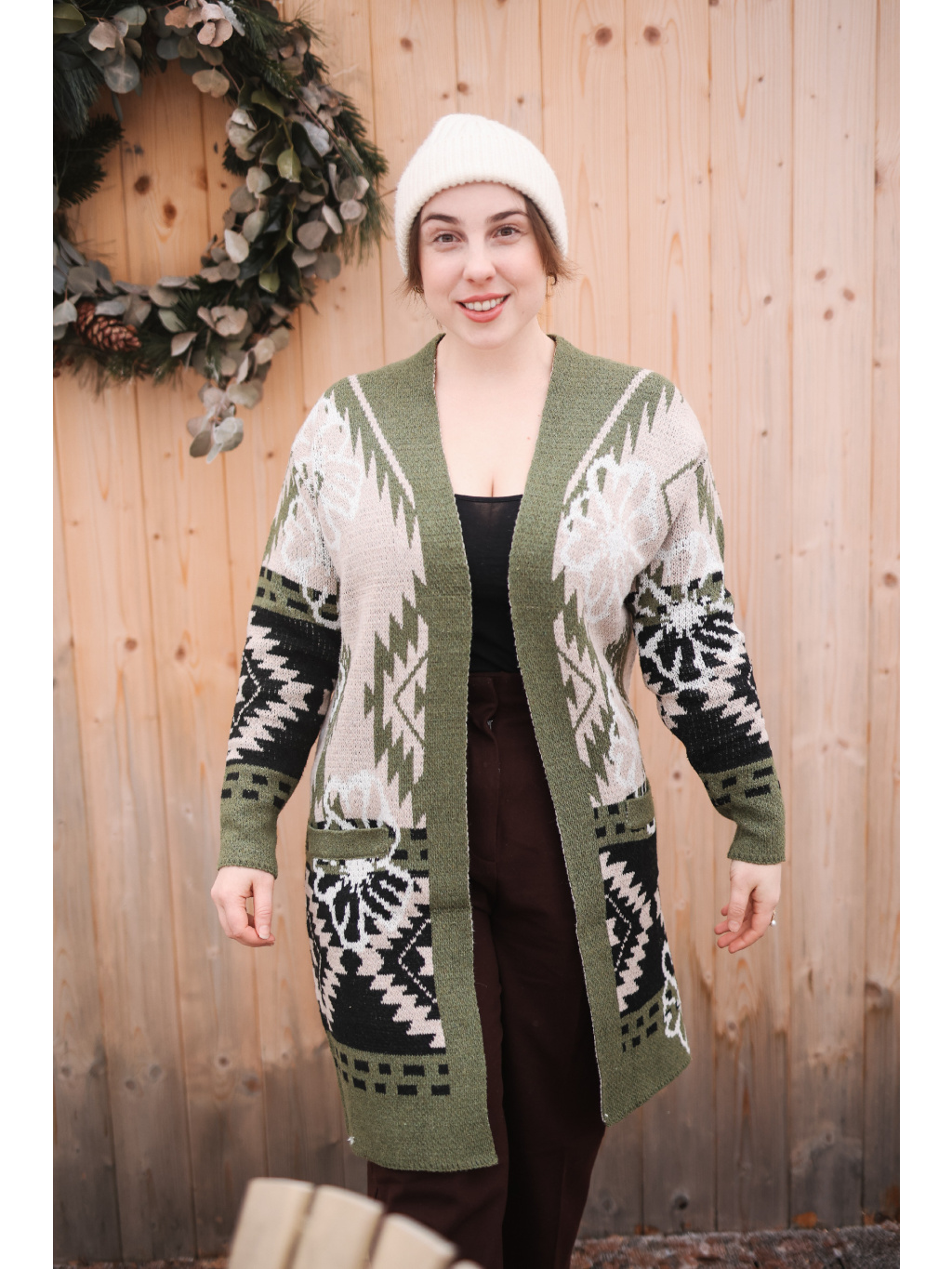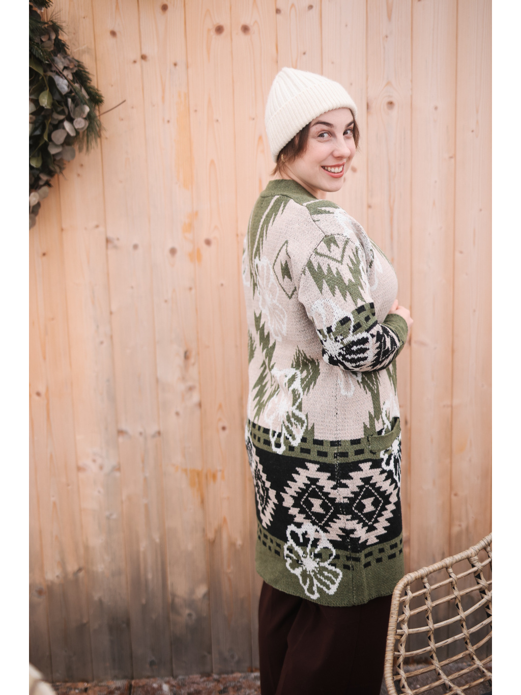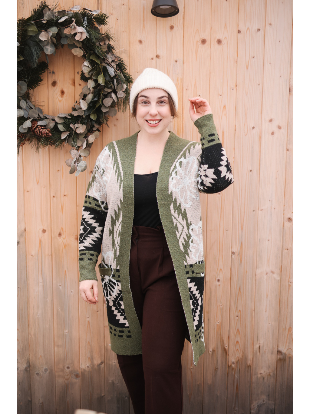 Originální vzorovaný kardigan, který nenechá nikoho na pochybách, že právě přišla žena plná inspirující energie a radosti.