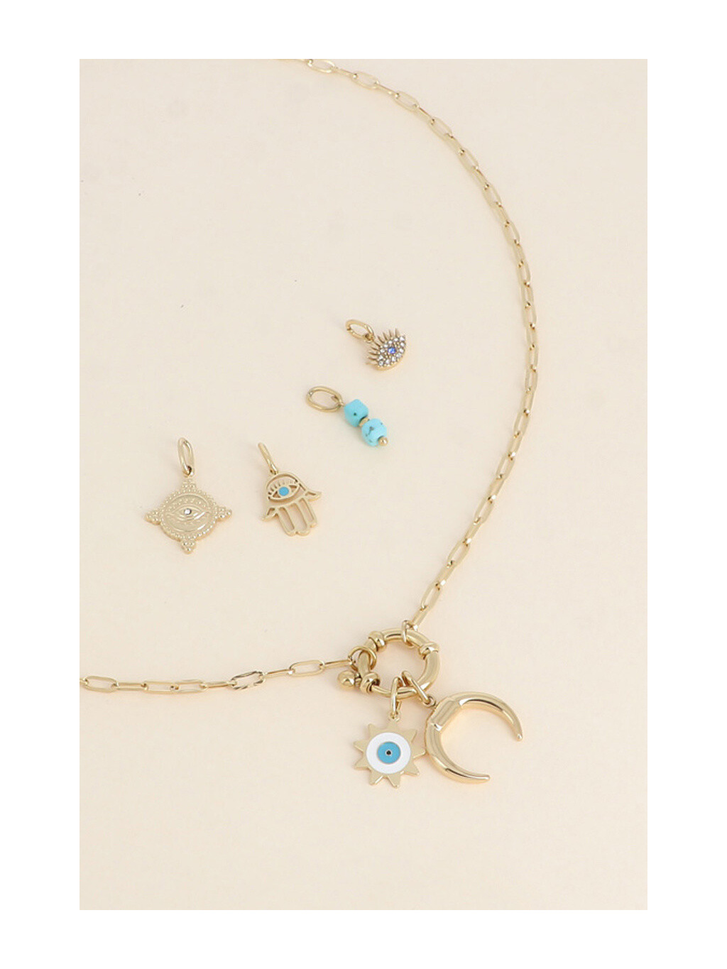 Přívěsek ve tvaru ruky Hamsa – symbol ochrany, štěstí a harmonie. Lze jej nosit pouze s náramky nebo náhrdelníky z kolekce momenTY, které mají otevírací sponu. 🪬✨