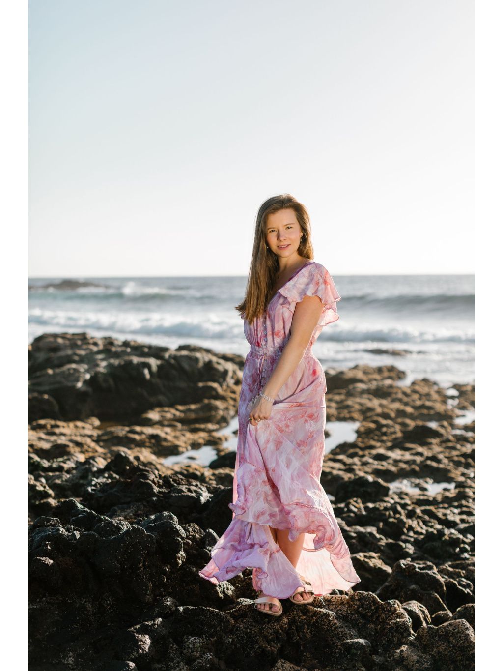 Asymetrický střih sukně s volány – vpředu kratší a vzadu delší – vytváří při chůzi nádherný vzdušný efekt. Ideální kousek pro letní oslavy i každodenní nošení. ✨