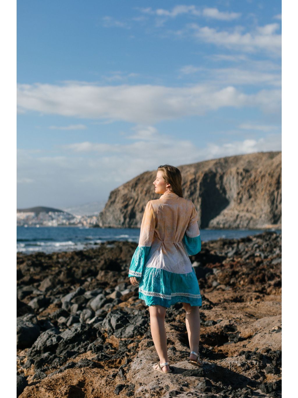 Boho tunika s ombré barvami, krajkovými lemy a zvonovými rukávy 🌊✨