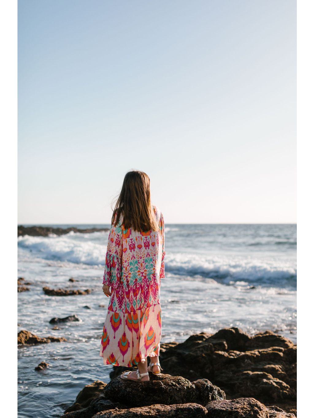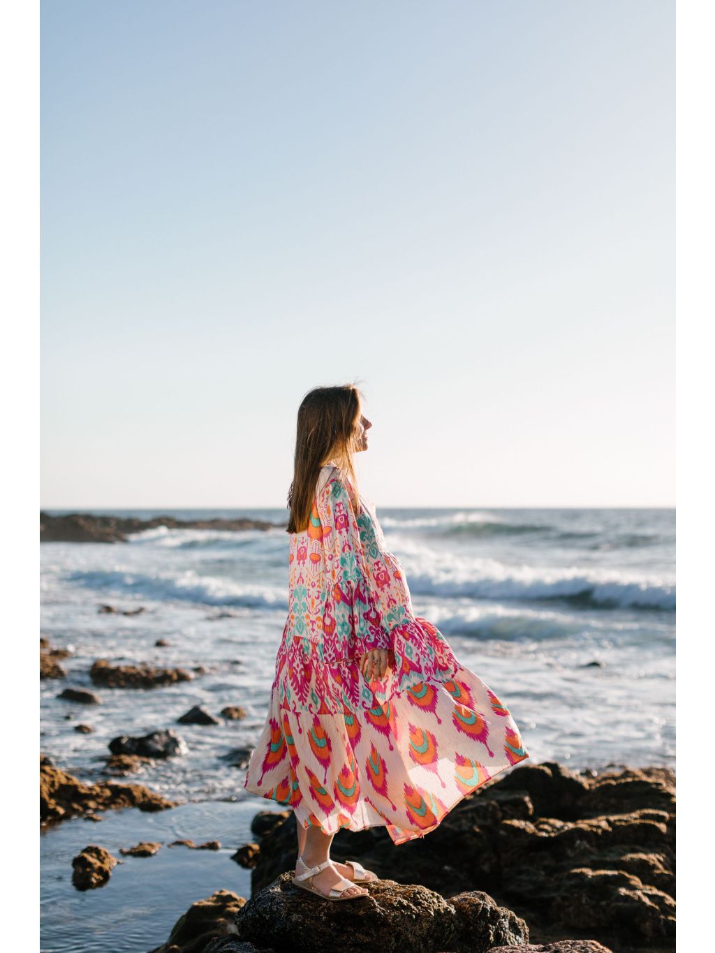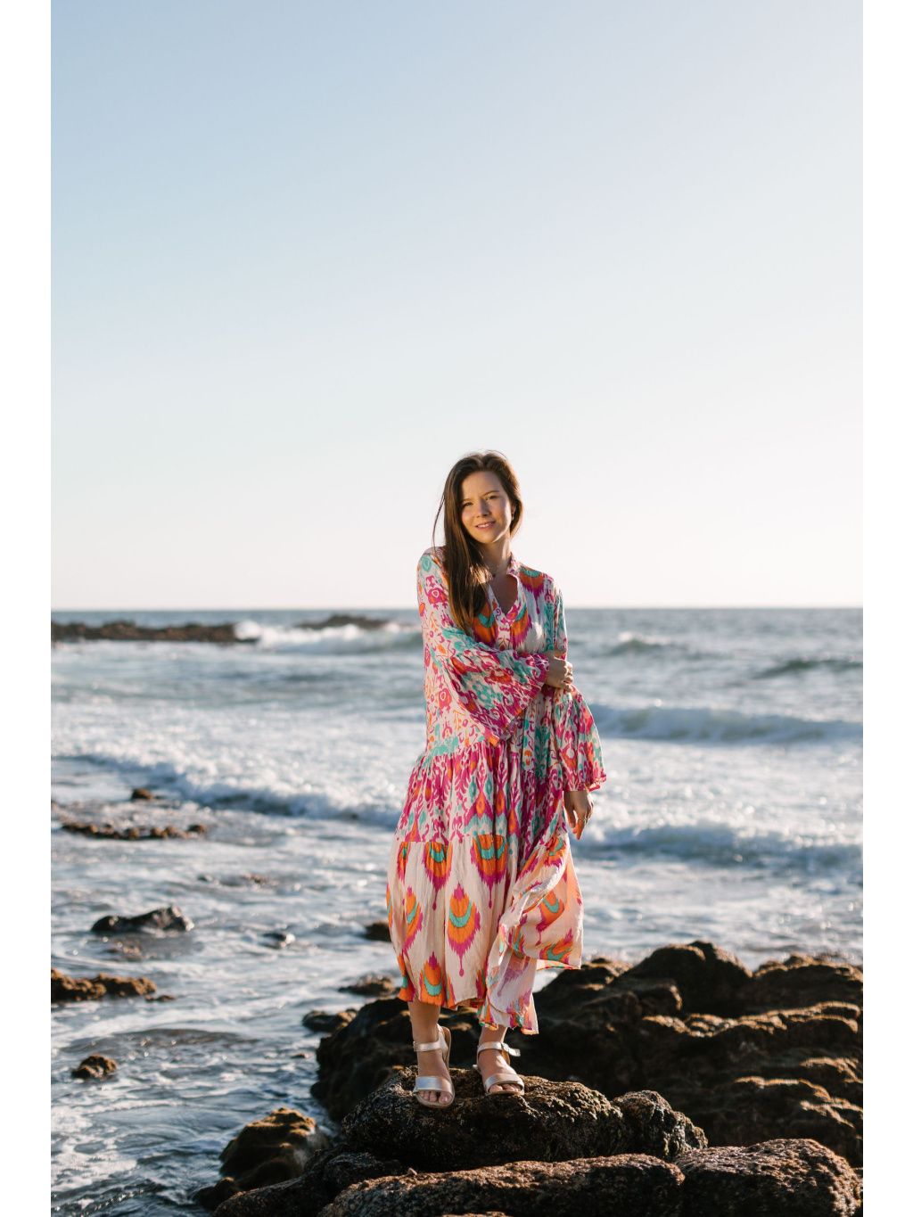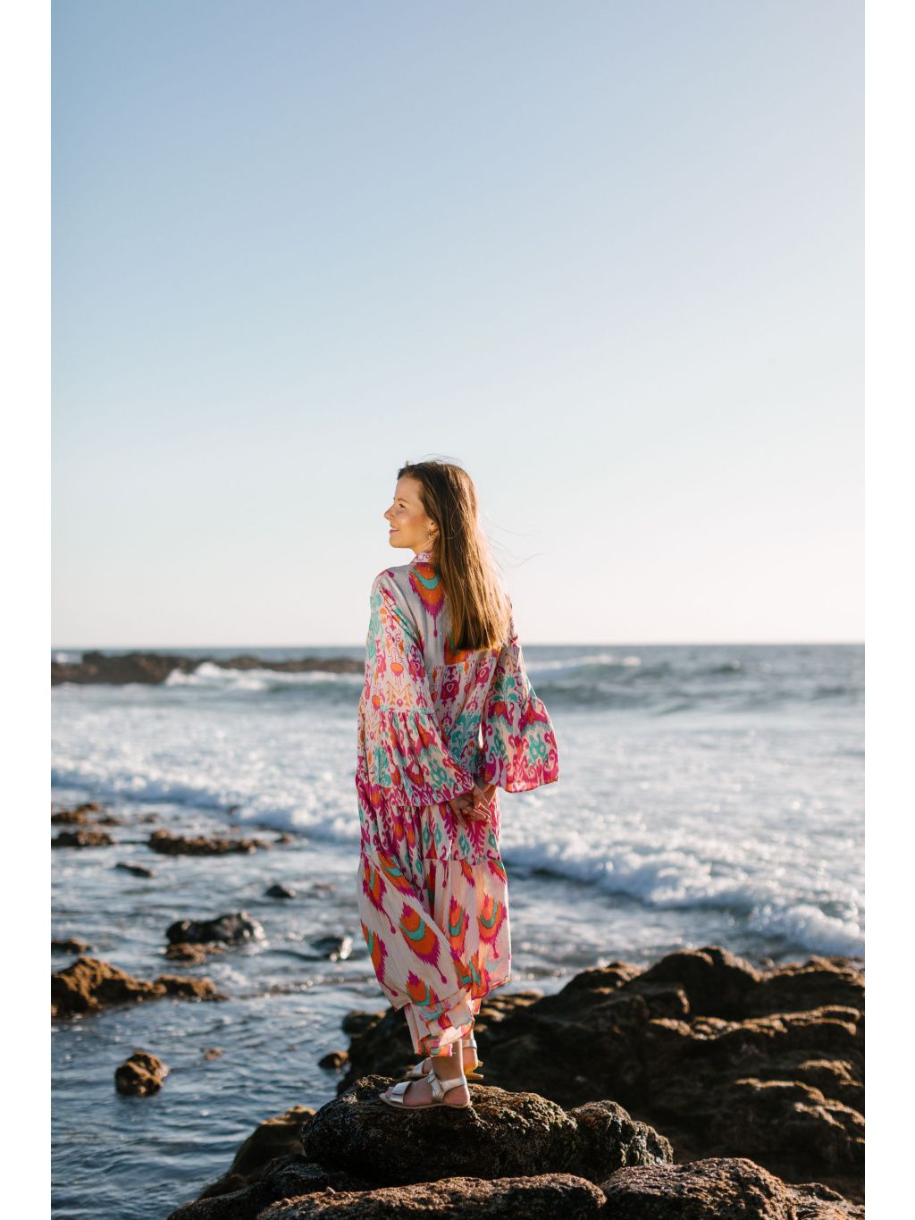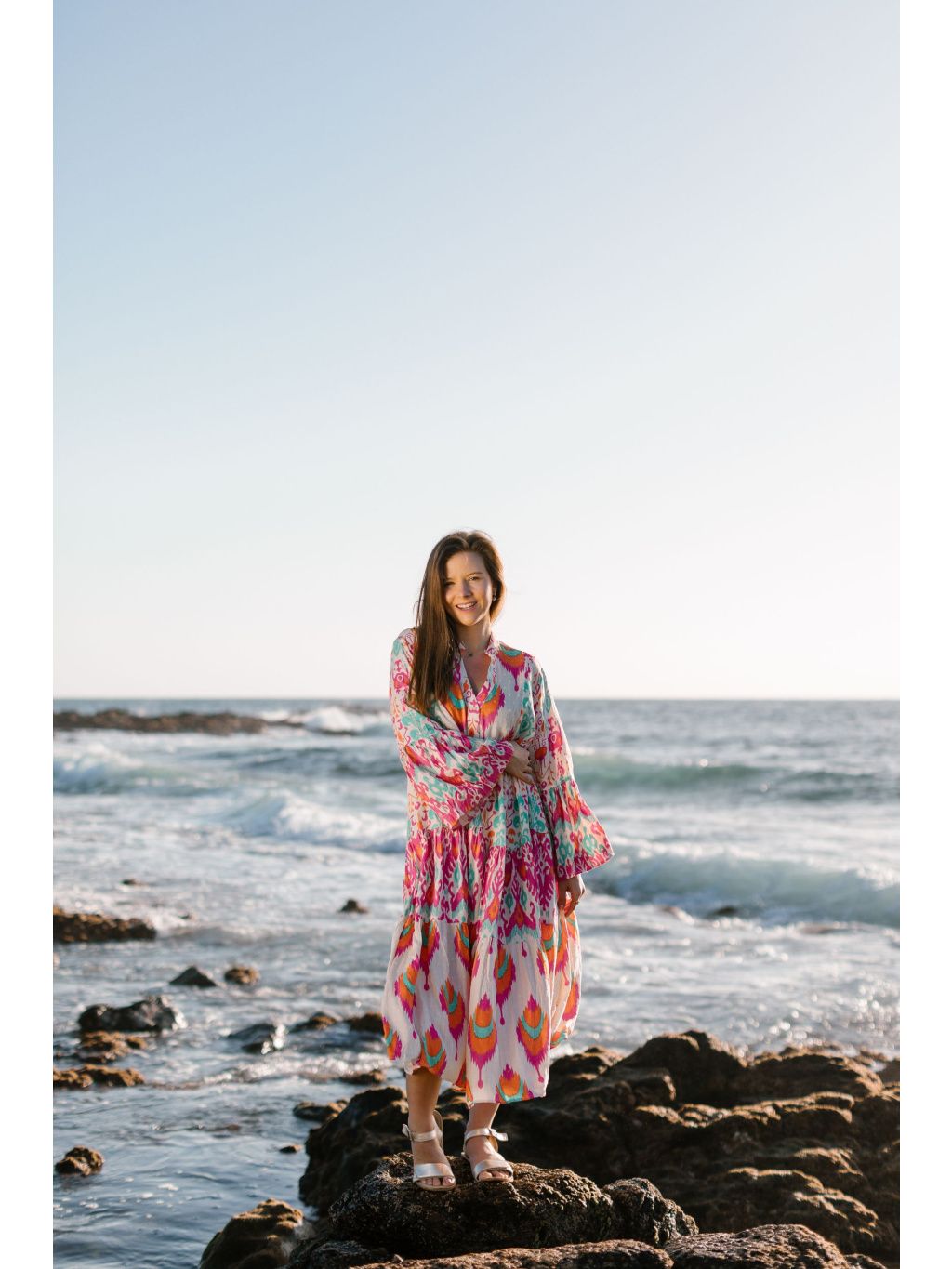Výrazné midi šaty s barevným boho vzorem v růžové, oranžové a tyrkysové – odvaha v barvách, pohoda ve střihu. 🔥💜