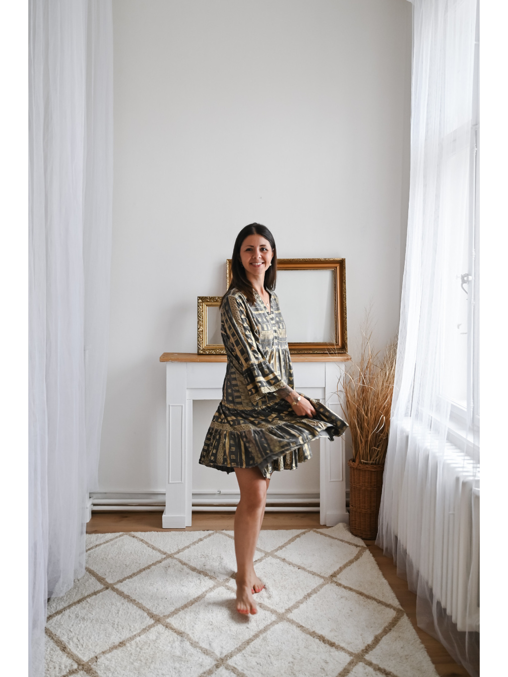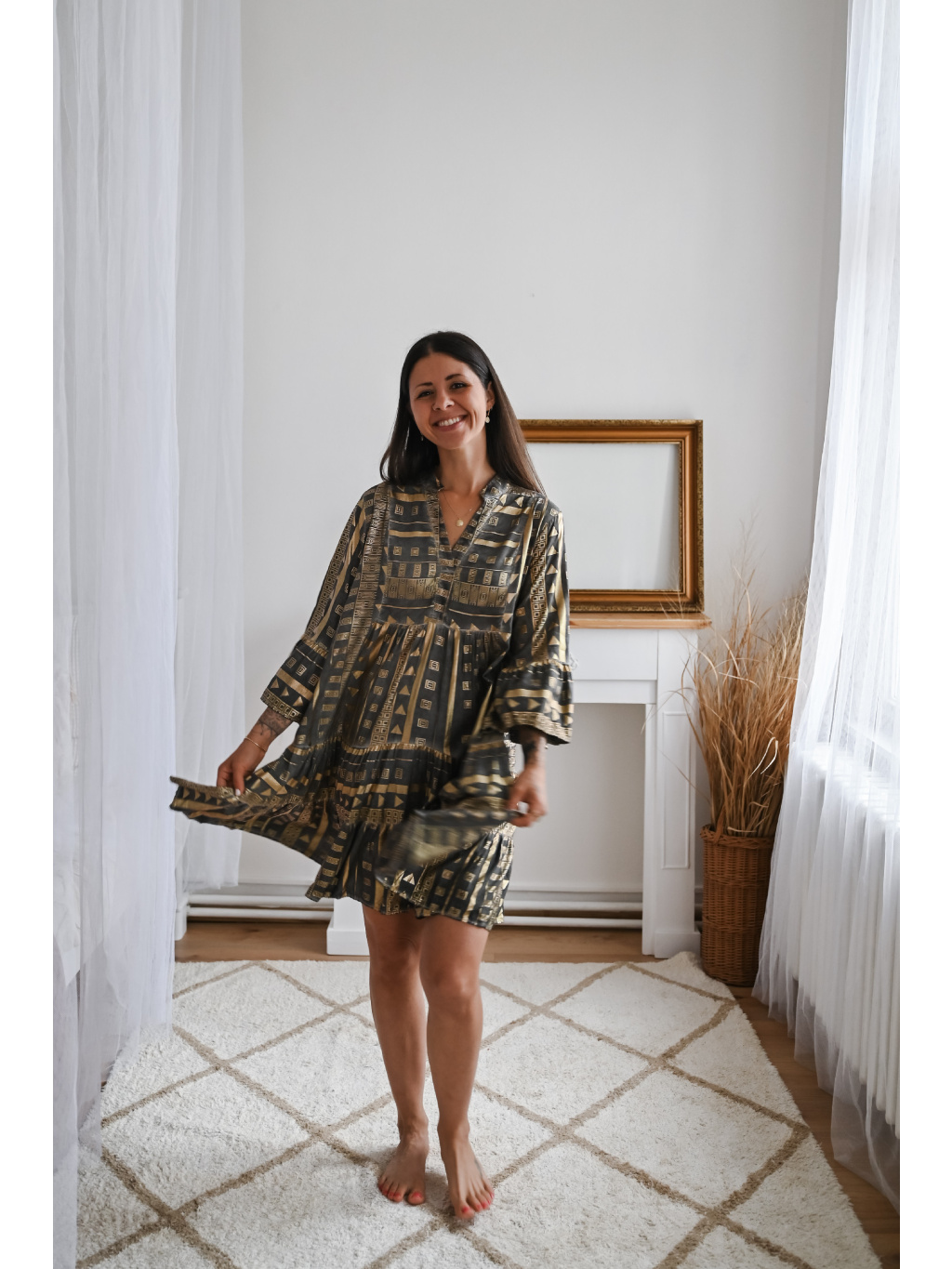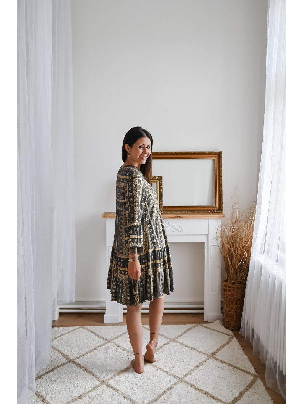 Modelka měří 174cm a má na sobě velikost S.