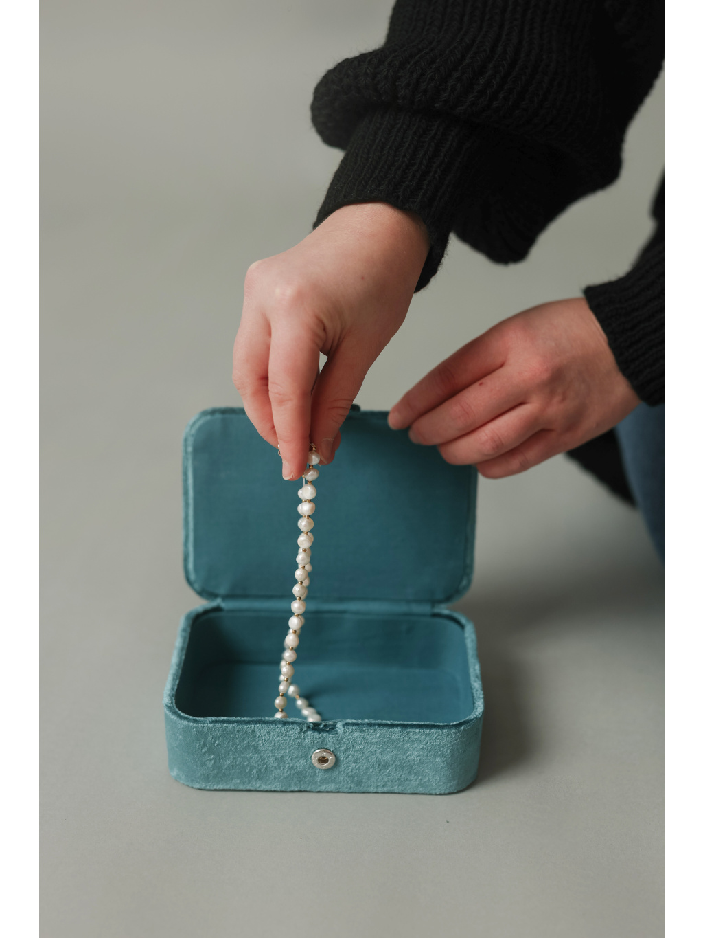 Uvnitř najdeš prostor na své šperky, kamínky, vykládací karty nebo jiné osobní poklady. Díky praktickému zapínání na patent je obsah v bezpečí – ať ji máš doma na poličce nebo si ji bereš s sebou na cesty.