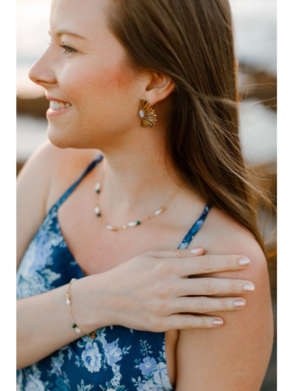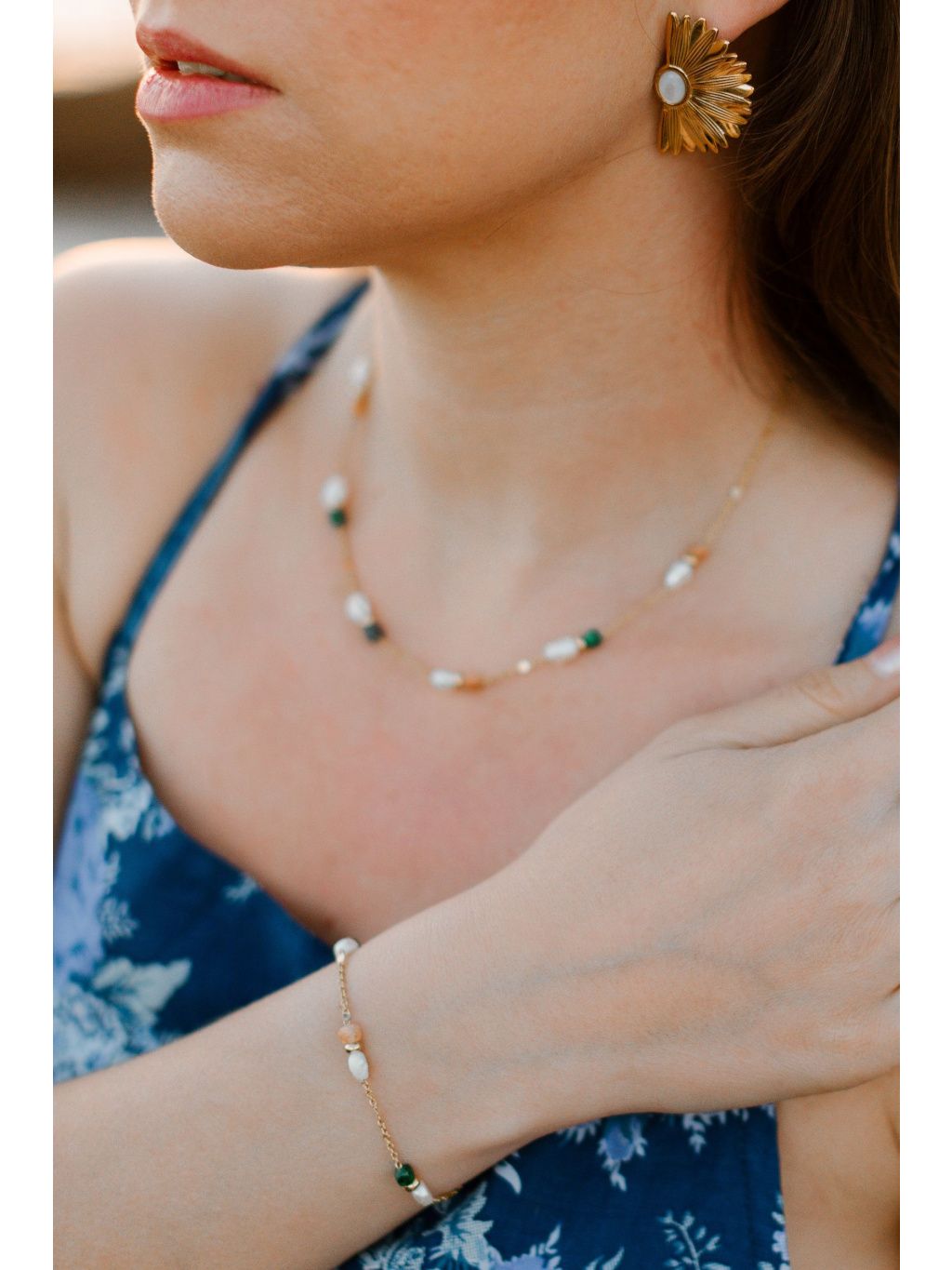 Ozdobte svůj dekolt kouskem, ve kterém se snoubí čistota říčních perel s magickou energií přírodních kamenů. ✨ Tento jemný, ručně doladěný šperk z kvalitní pozlacené oceli bude vaší každodenní připomínkou vlastní jedinečnosti a vnitřního klidu. 🌿🤍