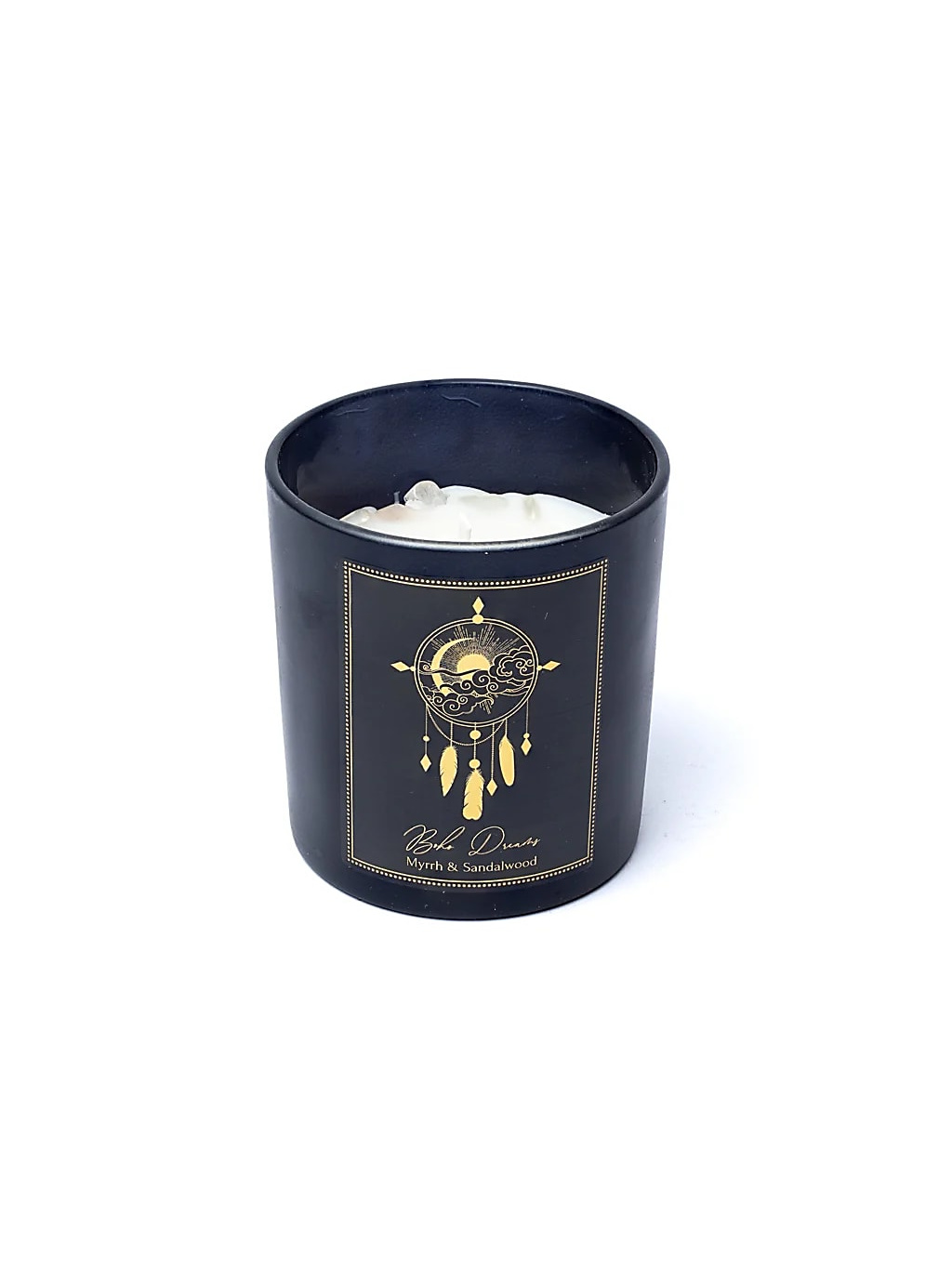 Vytvořte si doma klidný a inspirativní prostor s manifestační svíčkou Boho Dreams. Jemné světlo plamene v kombinaci s hřejivou, zemitou vůní pomáhá zpomalit, uvolnit mysl a soustředit se na vlastní záměry. Ideální společník pro večerní relax, meditaci nebo chvíle, kdy si chcete dopřát vědomý odpočinek.