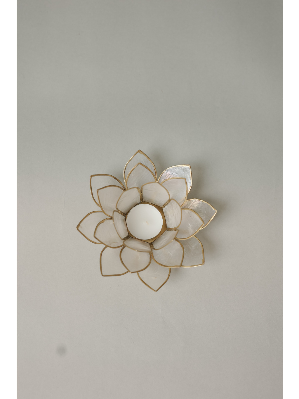 Ručně vyrobený z capizových lastur, které krásně propouštějí světlo. Zlatý lem dodává elegantní kontrast a po zapálení svíčky vzniká jemná, ztišená záře, která podporuje chvíle usebrání, ticha i prostého bytí.