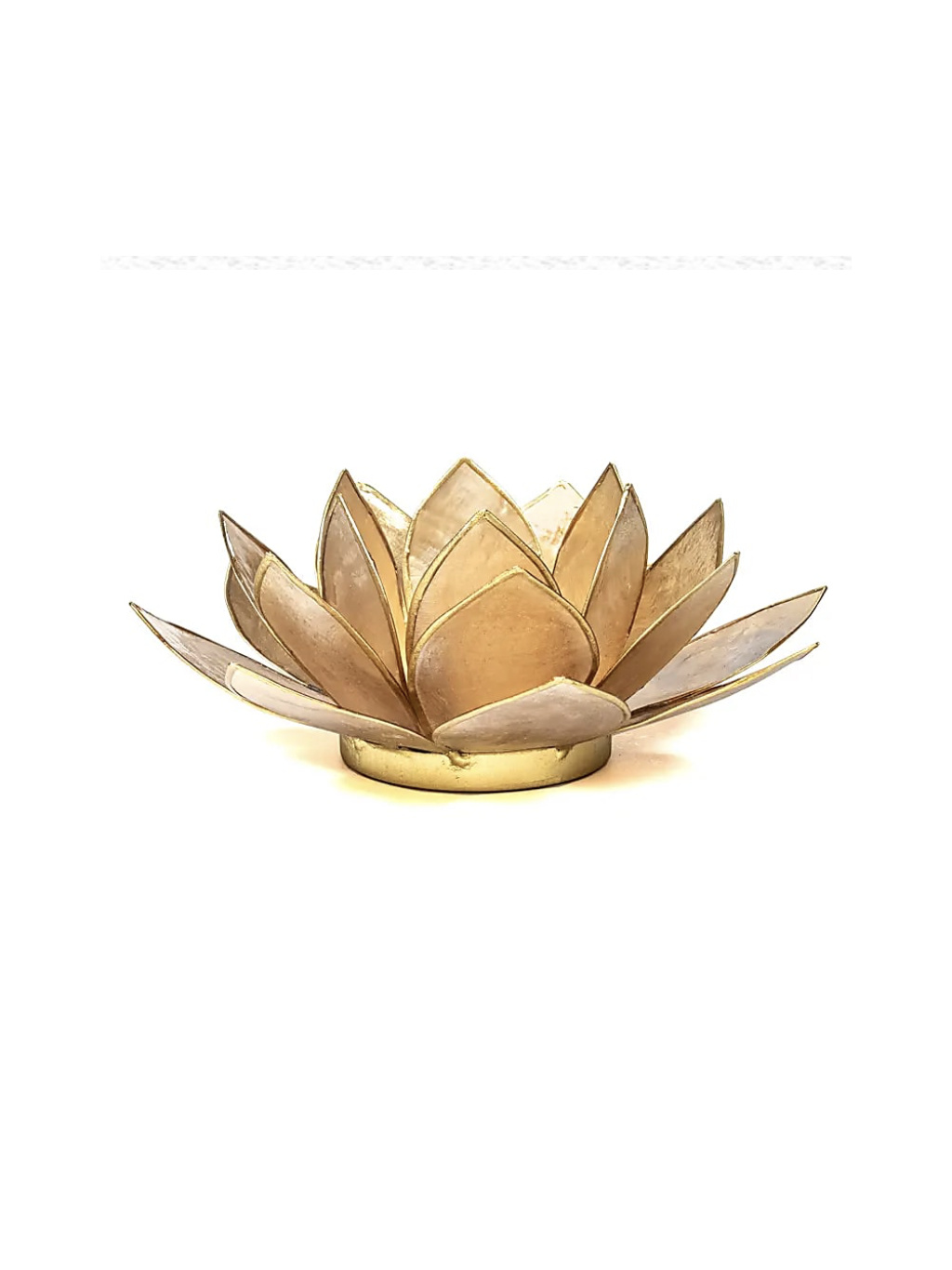 Jemný svícen ve tvaru lotosu s okrajem ve zlaté barvě. Symbol proměny, světla a rovnováhy. Krásný doplněk pro svíčku i prostor. 🤍🕯️